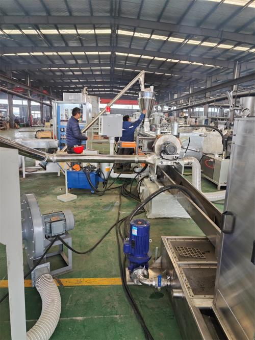 11. 水溫一般應(yīng)在 50-60℃,低了容易斷條,超出容易粘連,初開機(jī)時最好加一半熱水;如沒有條件,切粒時可人工向塑料造粒切粒機(jī)內(nèi)輸送一段時間,等水溫升高后再自動切粒,以免斷條;水溫超過 60℃后,需向內(nèi)循環(huán)加入冷水以保持溫度。
